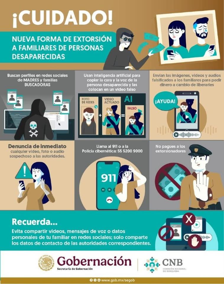 Gobierno Federal da a conocer una nueva forma de extorsión que los criminales están utilizando en contra de los familiares de personas desaparecidas